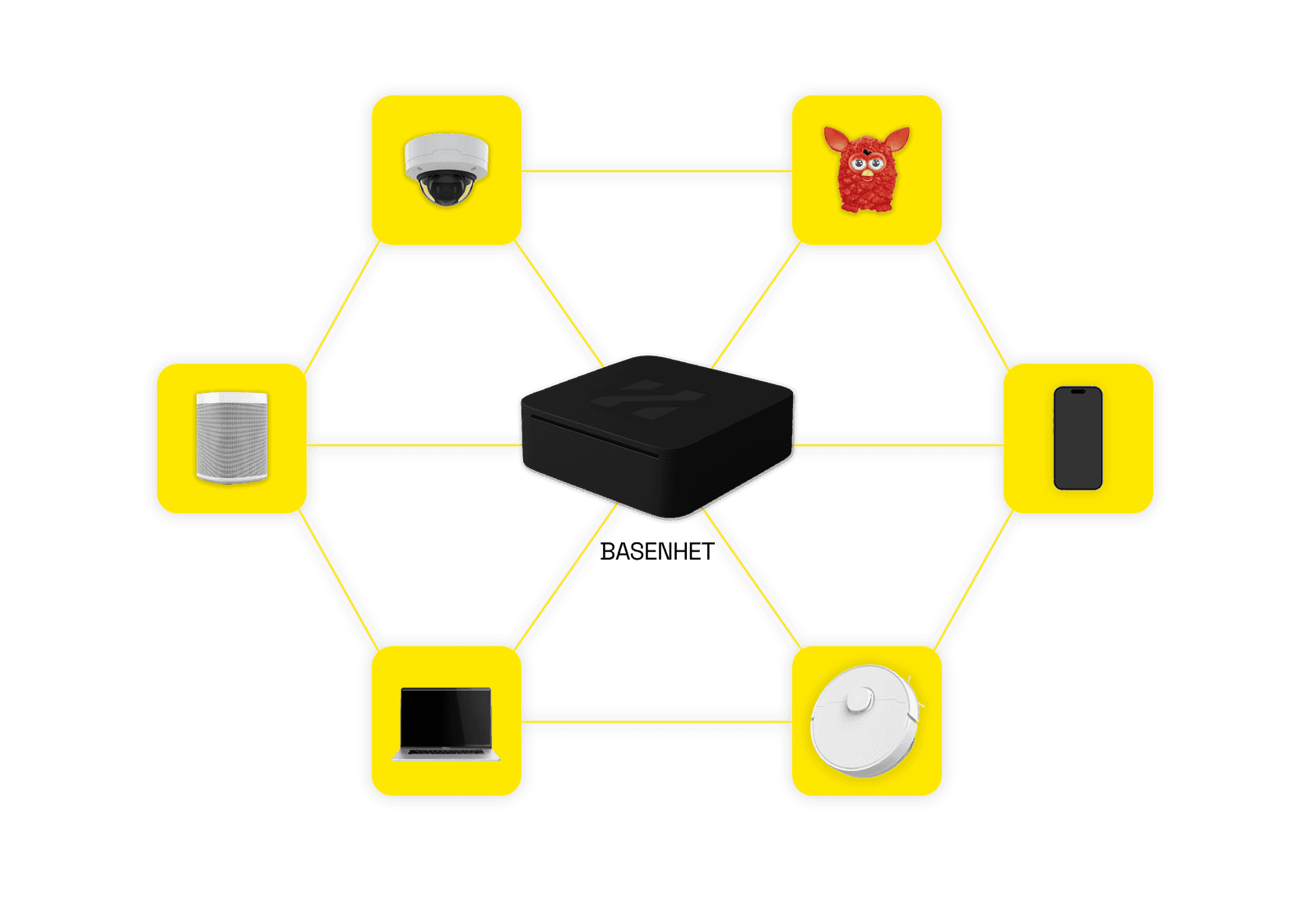 Vår egenutvecklade basenhet installeras i den anställdes hem och skyddar hela nätverket lokalt. Alla uppkopplade enheter omfattas automatiskt, vårt skydd är inte ett klient skydd (att den bara skyddar en enhet) utan den skyddar allt som är uppkopplat på nätverket såsom en dammsugare, tv etc som du typiskt inte har appar att styra.